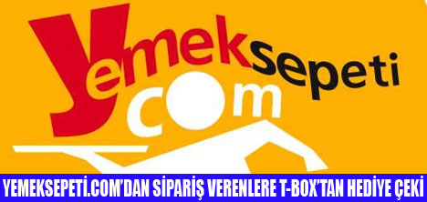 YEMEK SEPETİ KAZANDIRIYORYemeksepeti.com'dan sipariş veren kullanıcılar T-box'tan 10 TL değerinde hediye çeki kazanıyor.30 Eylül 2009 / 09:44YEME İÇME