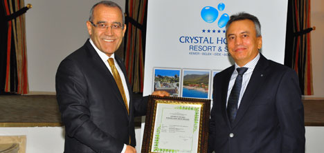Kültür ve Turizm Bakanlığı tarafından Crystal Hotels Çatısı altında bulunan 5 otele, 'Çevreye Duyarlı Konaklama Tesisi Belgesi' verildi