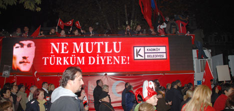 Kadıköy Belediye Başkanı Selami Öztürk de, vatandaşlarla birlikte Cumhuriyet Andı'nı okudu. Kutlamalar kapsamında Kadıköy Belediyesi vatandaşlara 40 bin Atatürk posteri ile 40 bin Türk bayrağı dağıttı. Bağdat caddesi katılan halka yetmedi izdiham yaşandı polis çocuk arabalı bayanlara yardımcı olurken çok sayıda yaşlı da yardım istedi...