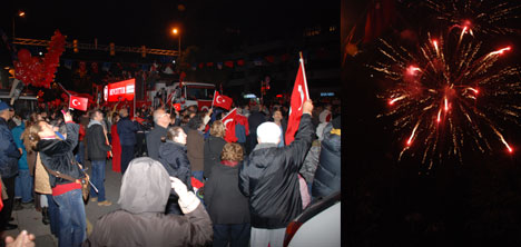 Yürüyüş sonunda göztepe ışıklarda bulunan park içinden havai fişek gösterisi yapıldı. Evlerinden pencerelere çıkan vatandaşlar yürüyüşe destek verdi alkış tuttular...