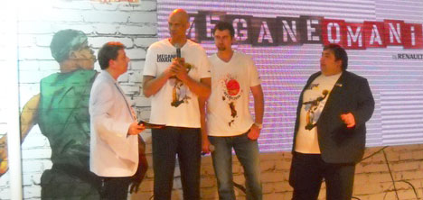 Murat Murathanoglu'la yapılan söyleşmelerin arkasından Kareem Abdul Jabbar ve Mehmet Okur,birbirini markajlı pozisyonla, sahneye kurulan potaya basket şutu attılar. Jabbar'ın şutu basket olurken Okur'un şutu ah lar sesleri arasında panyadan döndü.Dudaklarda tebessüm bırakan bu andan sonra, Arabanın kapısına ve koltuğa imza atma töreni geldi. Arabaya atılan imza sonrası giyilen MEGANEOMAN-I'M formaya sıra geldi. Kareem Abdul Jabbar'ın formaya attığı imzasından sonra altına ismimizi yazmanın, yakaladığımız fırsatın keyfini yaşadık. NBA'nın maç öncesi ve devre arası Pon-Pon danscı kızlar Cavalier Girls 'ın muhteşem dansını izledik. Atena Rock grubu sahnede yerini aldı. Basketbol milli marşımız haline gelen 12 Dev Adam birlikte söylendi. Konser, parti, kutlama devam etti.