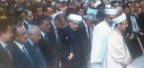 İSTANBUL-Cumhurbaşkanı Abdullah Gül ve Başbakan Recep Tayyip Erdoğan, öğle namazını kıldıktan sonra cami avlusunda bulunan naaşın yanına geldi. Erdoğan alana geçişi sırasında yine vatandaşların taziyelerini kabul etti. Başbakan Recep Tayyip Erdoğan'ın annesi Tenzile Erdoğan'ın cenaze töreni için Fatih Camii'nde geniş katılımlı cenaze töreni yapıldı.