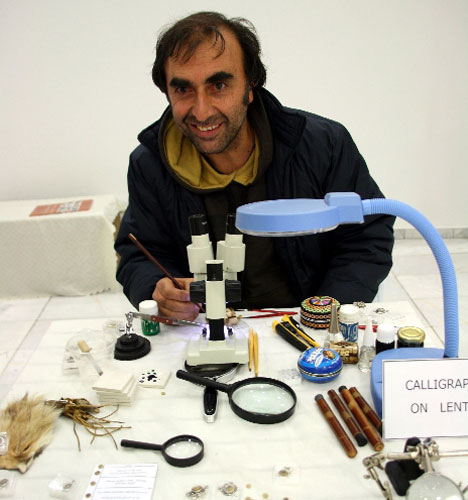 Necati Korkmaz, mikroskop altında mercimek taneleri üzerine hat yazıları işleyerek bir ilki gerçekleştirdi