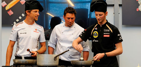 Jenson Button ve Romain Grosjean yarış tutumlarını çıkartıp aşçı kıyafetleri giydi ve Pirelli Motorsporları Direktörü Paul Hembrey'in gözetiminde kıyasıyla bir yeme yarışına girdi. İki pilotun kıyasıya mücadelesine sahne olan Pirelli Motorhome'unun özel yemekleri Pirelli şeflerinin hazırladığı Miles and Meals isimli kitapta bir araya getirildi. Aslında sınırlı sayıda bastırılan ve Pirelli Motorhome ziyaretçilerine hediye olarak verilen kitap lastiklerle yemekler arasındaki benzerlikleri esprili bir şekilde masaya yatırıyor. Pirelli Ar-Ge Direktörü ve Formula 1 PZero ile Cinturato lastiklerinin geliştirilmesinde önemli rol oynayan Maurizio Boiocchi kitabın girişinde yer alan yazısında iyi bir lastik üretmek, iyi rizotto yapmak gibidir diyerek lastik üretiminin zorluğu ile yemek yapmanın zorluğu arasındaki bağı ortaya koyuyor.