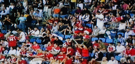 Salonu dolduran Türk basketbol severler, üzerlerinde kırmızı-beyaz formalar, ellerinde Türk bayraklarıyla marşlar söyleyip, tezahüratlar yaparak, coşkuyla milli takımı destekledi.