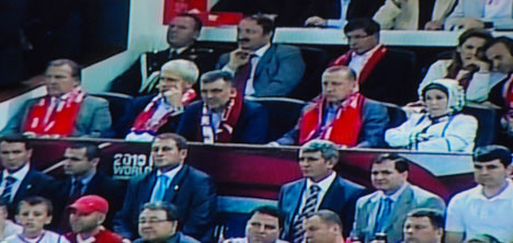 Başbakan Recep Tayyip Erdoğan da maç başlarken eşi Emine Erdoğan ile birlikte salona gelip, Cumhurbaşkanı Gül'ün yanına oturarak, aynı locadan maçı izledi. Dışişleri Bakanı Ahmet Davutoğlu, Devlet Bakanı Faruk Nafiz Özak, Devlet Bakanı Hayati Yazıcı, Devlet Bakanı ve Başmüzakereci Egemen Bağış da karşılaşmayı locadan izleyenler arasındaydı.