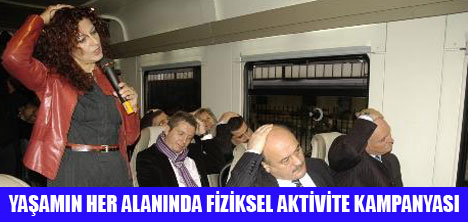 Sağlık Bakanlığı'nın, Yaşamın Her Alanında Fiziksel Aktivite kampanyası kapsamında Devlet Demiryolları ve Hacettepe Üniversitesi işbirliği ile düzenlenen Yolculukta Egzersiz kampanyası tren yolcularına verilen egzersiz dersiyle başladı